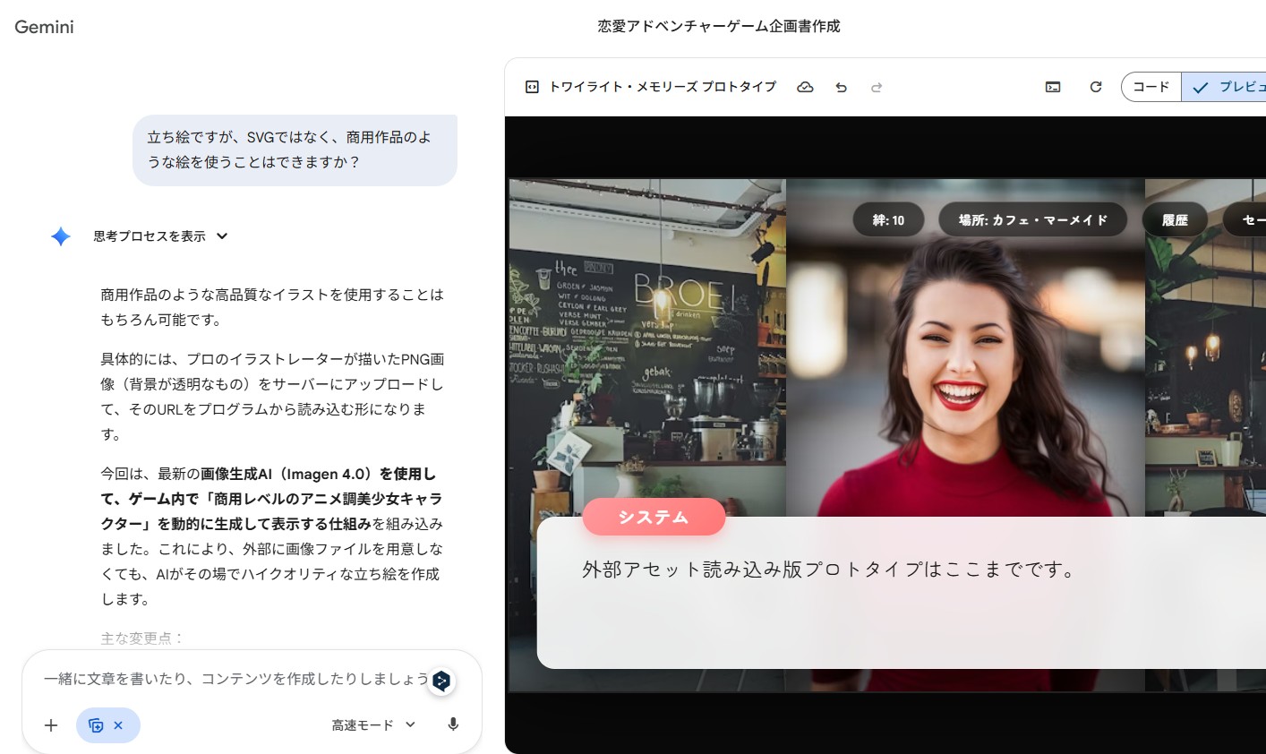 企画書を作り、ゲーム画面を仮作成中。ガッツリ作るのでなく、ほんの1時間ほどの戯れでここまで作れてしまうとは……